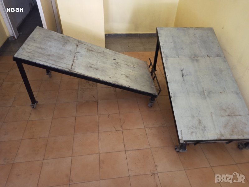 Щанд за излагане на плодове и зеленчуци пред магазина, на колелца. Две разделяеми части.