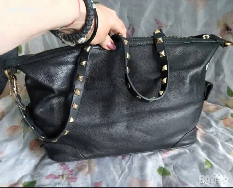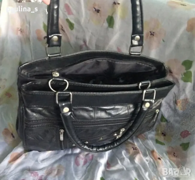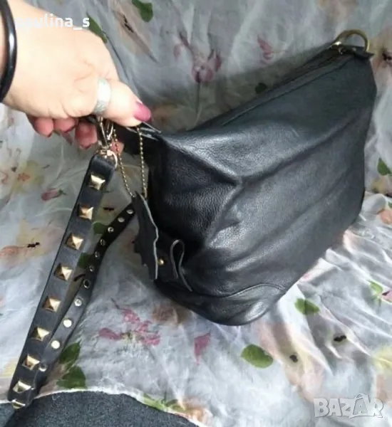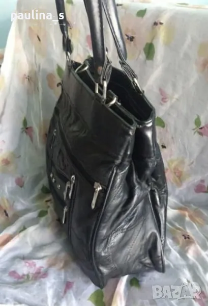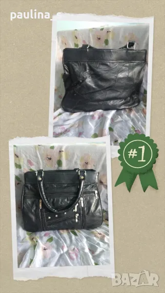 3️⃣. Колаж / Чисто Нова! Черна чaнта от естествена кожа. Цената е крайна 49,99лв / 25 евро. Дръжката се оценява отделно - цена 19,99лв / 10 евро и не се делят. Има едно отделение и вътрешен джоб с цип. 28см / 24см.