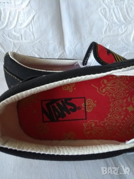 VANS в черно и червено, отвътре са естествена кожа без стелката, дизайнерски, дължина на стелката 25см.
