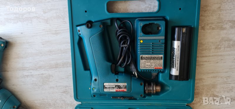 Комплект 2 броя оригинални маркови винтоверти Makita 6012D, оригинално зарядно Макита, оригинален куфар Makita, 2 батерии от които едната перфектна, другата е по-слаба, става за резервна. Винтовертите работят перфектно. Цената е за пълният комплект, описан по-горе