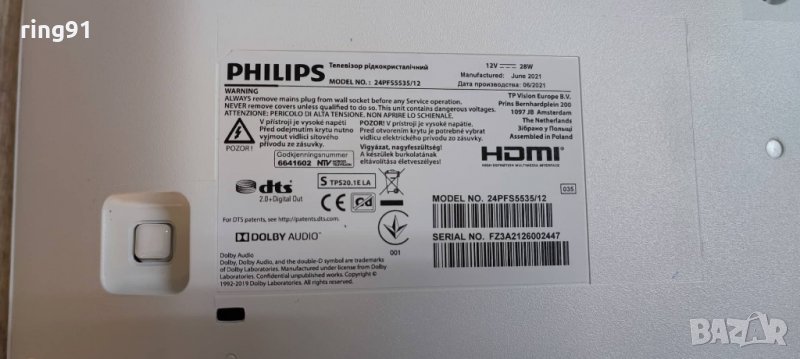 TV Philips 24PFS5535/12 На части , снимка 1 - Части и Платки - 37163127 TV Philips 24PFS5535/12 На части , снимка 2 - Части и Платки - 37163127 TV Philips 24PFS5535/12 На части , снимка 3 - Части и Платки - 37163127 1/3