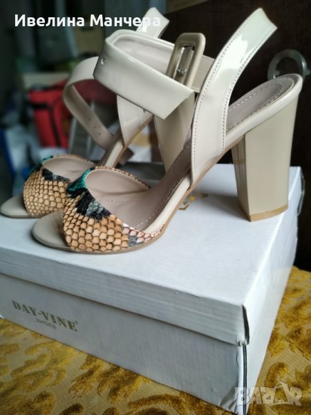 Елегантни дамски сандали на ток, подходящи както за официални тоалети, така и за спортно-елегантни. Обувани са само веднъж, почти неразличими от нови.Изпращам с опция преглед.