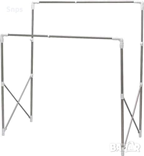 Многофункционален: стойка за дрехи или телескопична сушилня с максимален капацитет 20 кг (т.е. 10 кг на пръчка)Регулируем: регулирайте ширината (от 97 до 150 см) и височината на отваряне (от 122 до 160 см) спрямо висящите дрехи и се насладете на перфектна стабилност.Здрав материал от неръждаема стомана, който е обработен с полипропиленови връзки срещу корозия и ръжда, така че можете да изсушите прането си без риск от повредаМалко насипно съхранение: сгъва се заедно с прост жест, за да заема много малко място при съхранение.Лесен за сглобяване и разглобяване: лесен за сглобяване без инструменти. Размери: 97/150 x 66 x 122/160 см