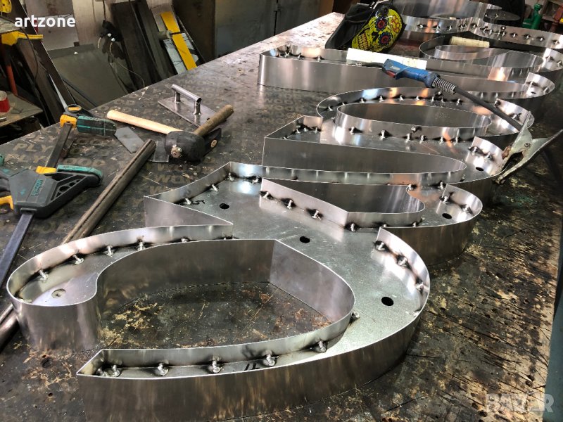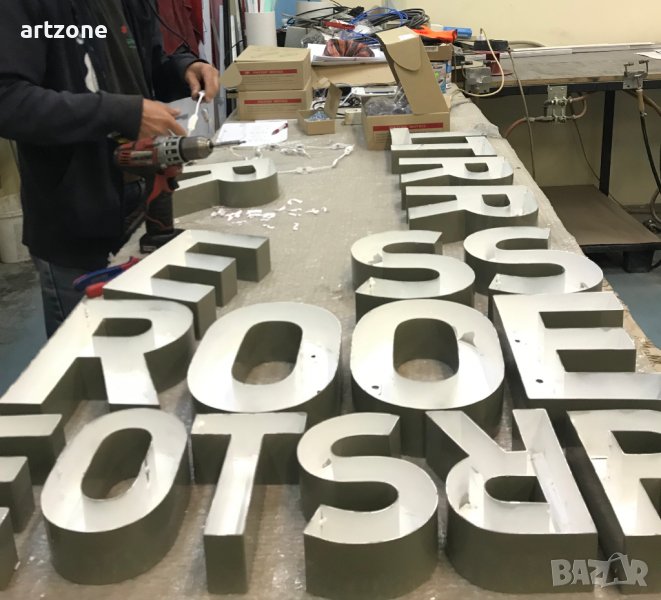 Според ползваните материали светещите букви могат да бъдат алуминиеви (с
