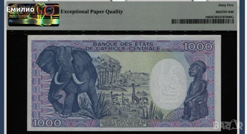 Продавам Рядка Сертифицирана Банкнота от Централна Африканска Република. 1000 Франка от 1986-1990