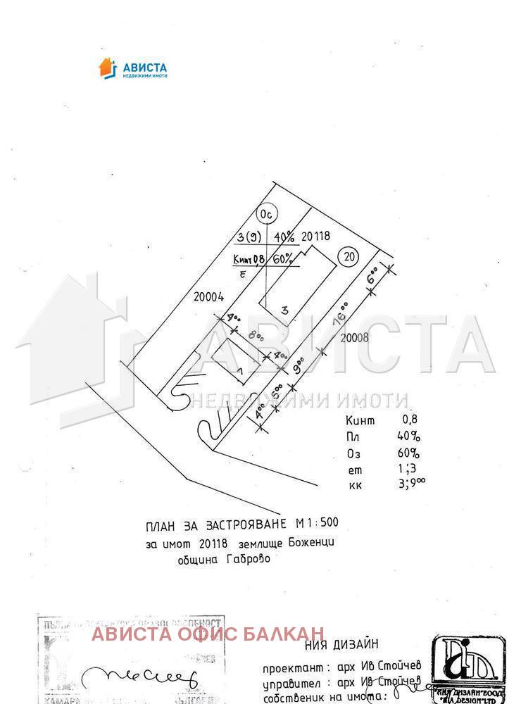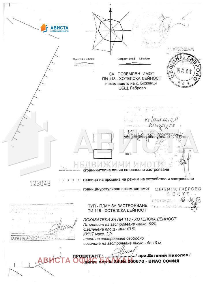 Село Боженци се е сгушило в северните поли на Стара планина. Намира се на 24 км от Трявна, на 15 км от Габрово и на около 200 км. от София. Впечатлява с добре запазените възрожденски къщи и обществени сгради. Днес селцето е сред предпочитаните дестинации за еко и селски туризъм. Обявено е за исторически архитектурен резерват от 1964 г. Перфектен поземлен имот за изгражданена обект Къща за гости в землището на с. Боженците,местност Оградето - Бостаните , община Габрово. Намира се точно в самото начало на резервата пред паркинга, където може да си оставите колата. Имота е с площ 800 кв.м.Разрешено изработването на ПУП с параметри на застрояване височина - 10 м, плътност на застрояване 60%, КИНТ 2.0,озеленяване 40%, начин на застрояване - свободно. Лице на асфалтов път 12 м.и с одобрен проект за застрояване + 6 бр.паркоместа пред имота. Снимките към офертата са илюстративни !!!