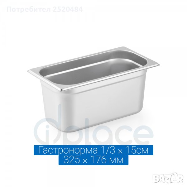 Гастронорм 1/3 32,5х17,6х6,5см /дълж.шир.вис./ цена 12,00лв/6,14€ Гастронорм 1/3 32,5х17,6х10см /дълж.шир.вис./ цена 15,00лв/7,67€ Гастронорм 1/3 32,5х17,6х15см /дълж.шир.вис./ цена 18,00лв/9,20€