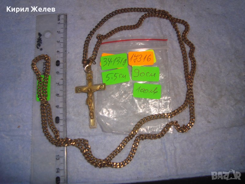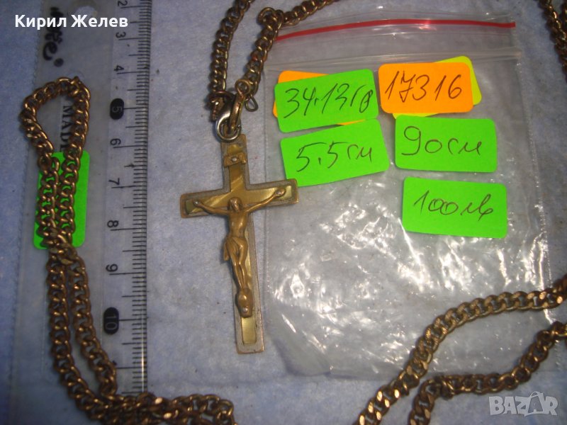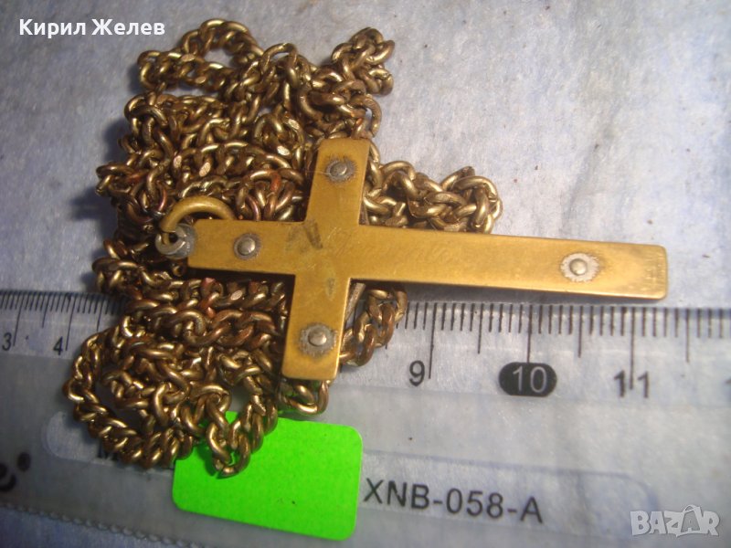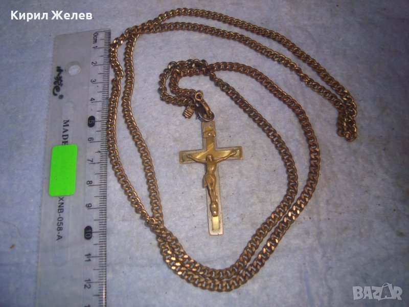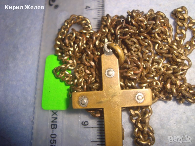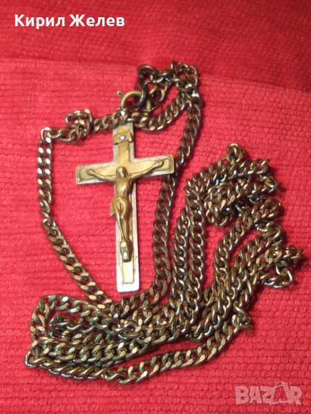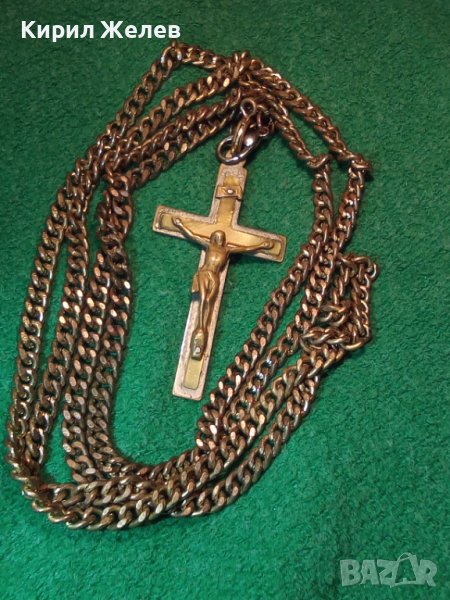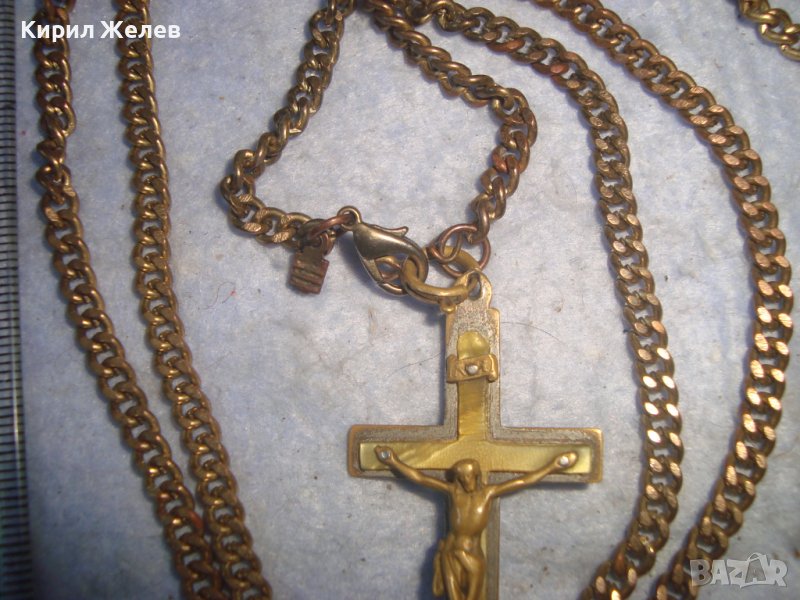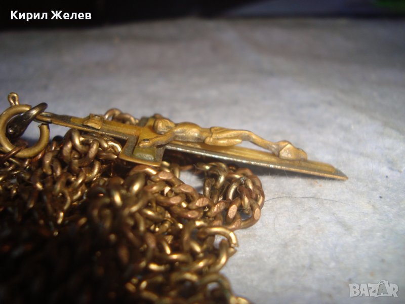 СТАРИННО ПОСРЕБРЕНО БРОНЗОВО РАЗПЯТИЕ КРЪСТ МАЙСТОРСКА РЯДКА РАБОТА с ПОЗЛАТЕНА РЕТРО ВЕРИЖКА 17316
