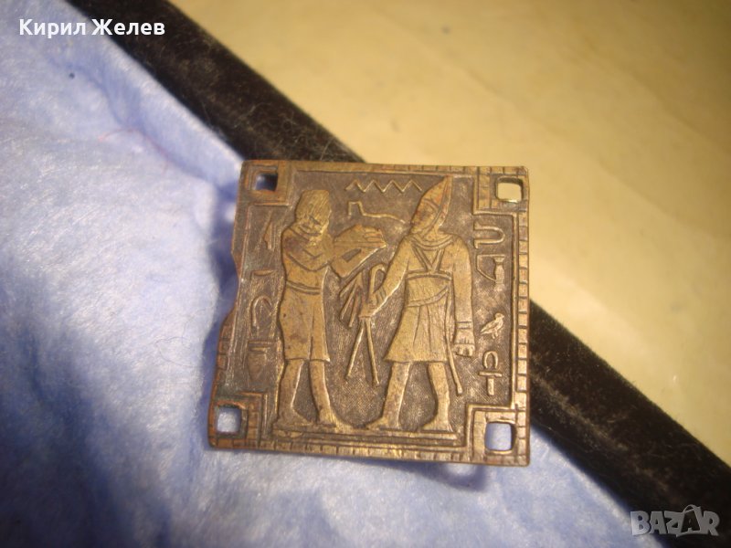 СТАРА ФИГУРАЛНО ДВУСТРАННО ОРНАМЕНТИРАНА БРОНЗОВА ПЛАСТИНА АПЛИКАЦИЯ МОТИВ ЕГИПЕТСКА МИТОЛОГИЯ 11986