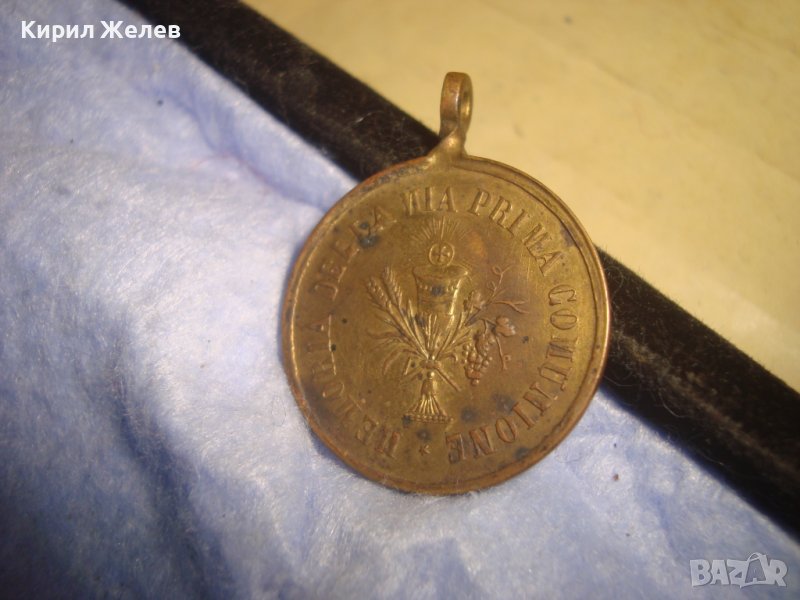 РЯДКА СТАРА БРОНЗОВА КАТОЛИЧЕСКА ДВУСТРАННА НАГРЪДНА ИКОНКА 17310 → Обява 37170868