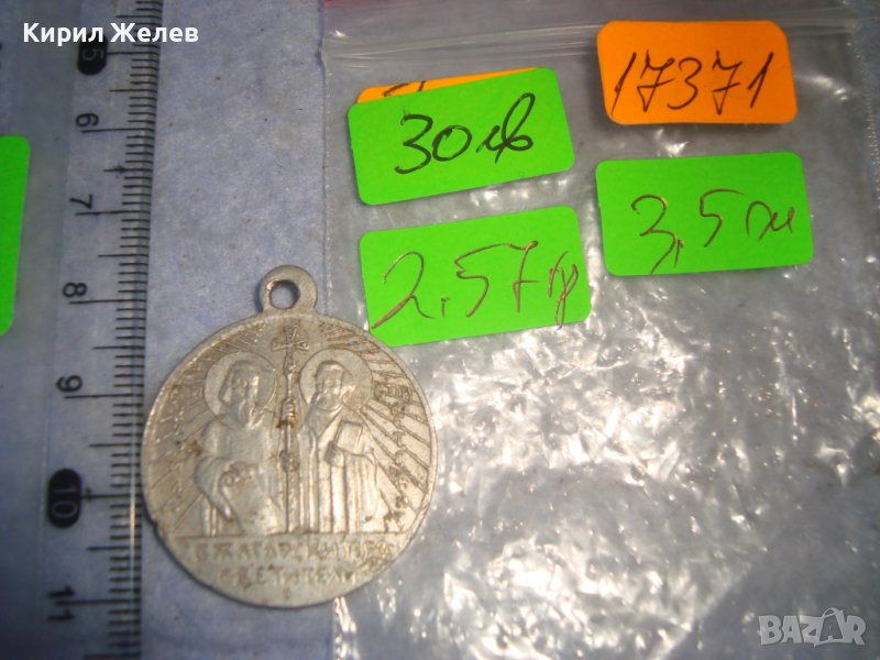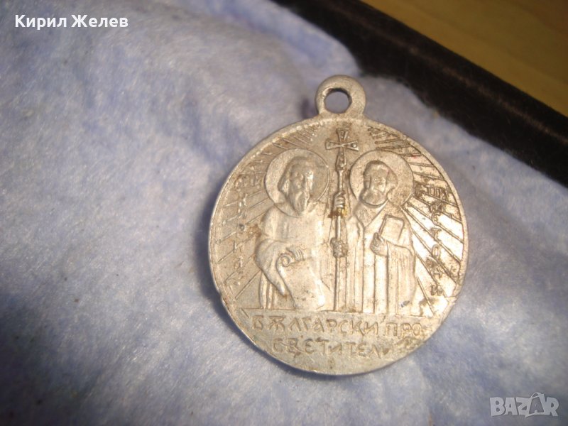 Св.Св. КИРИЛ и МЕТОДИЙ - БЪЛГАРСКИ ПРОСВЕТИТЕЛИ СТАРИННА МЕТАЛНА ДВУСТРАННА ИКОНКА 17371