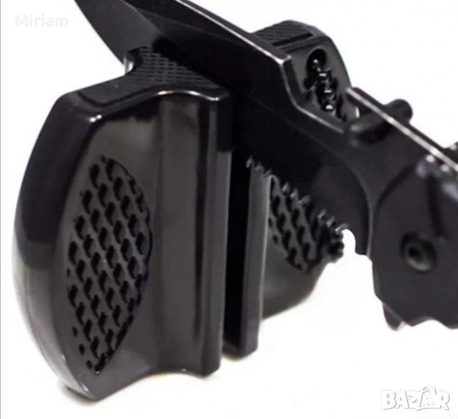 Поставете острието на ножа в процепа под 90-градусов ъгъл на точилото.