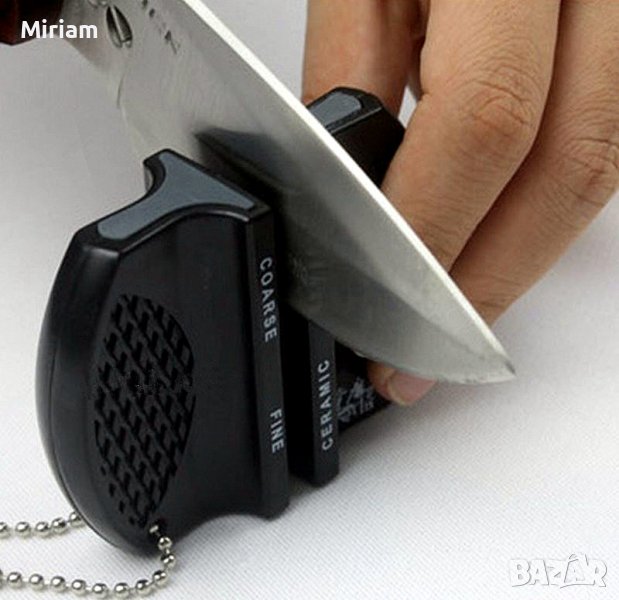 Двустепенното малогабаритно точило на Smith’s има две волфрам карбидни остриета с фиксирани ъгли, което осигурява идеалния ъгъл всеки път. Три или четири движения са достатъчни, за да се възстанови острието на много затъпен нож. От другата му страна са две пресечени керамични пластини, които също имат фиксирани ъгли и се използват, за да изглаждат острието на вече остри ножове. Точилото Smith’s е леко, преносимо и е снабдено с отвор и верижка за носене или окачване. Има гумени крачета за по-голяма сигурност и е идеално за наточване на всякакви ножове.Пресечените карбидни остриета осигуряват бързо наточване, а пресечените керамични пластини осигуряват добре наточено острие.Фиксираните ъгли на подостряне гарантират абсолютен резултат.Абразив: Грапав карбид/ Полирана керамика - 800 Grit