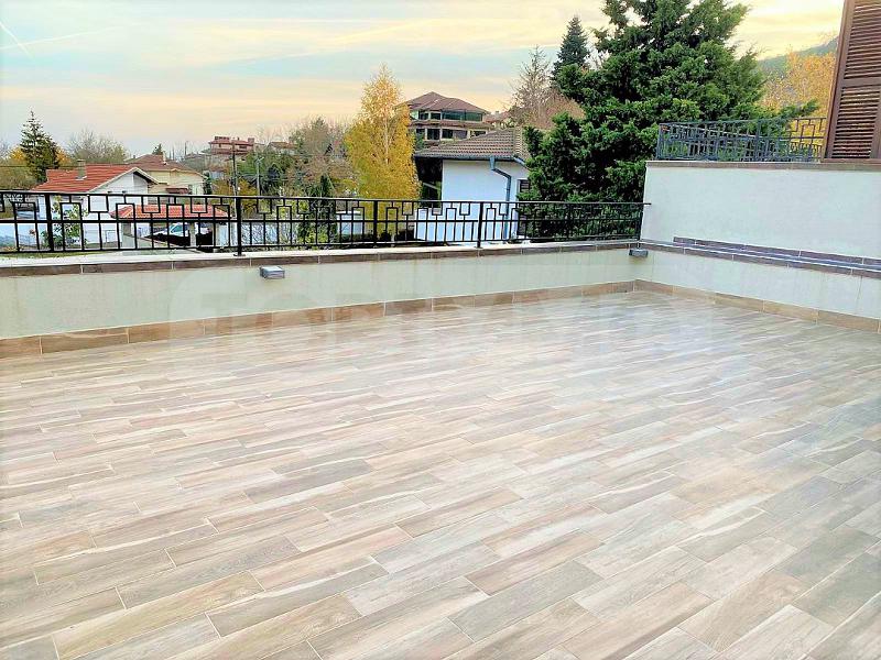 Втори етаж: 3 спални (едната със собствена баня с тоалетна), отделно баня с тоалетна, тераса - обща за две от спалните, стълбище за трети етаж;