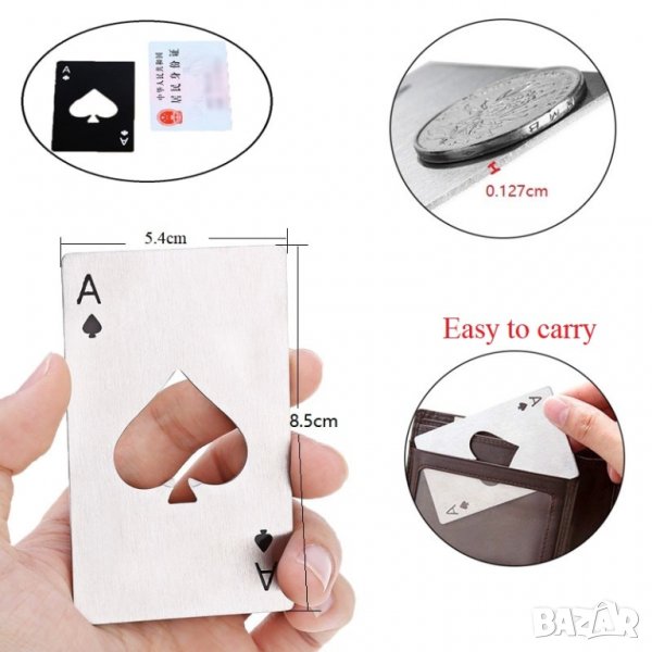 част от тесте с карти, бира - отварачка, красив артикул за подарък или като сувенир за късмет - асо пика продавано в България като отварачка за бира или като отварачка за бутилки от всякакъв род. Наистина велико и красиво и невероятно, както и сладко и мъжкарско. оригинално и уникално предметче за уникален и оригинален подарък