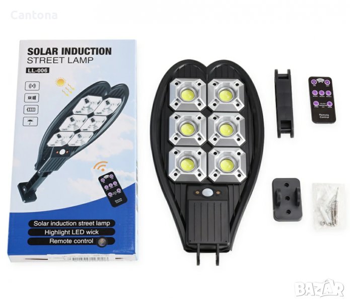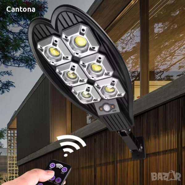 Двойна соларна лампа 6 мощни COB диода с лупи, дистанционно, сензор за движение и фотоклетка