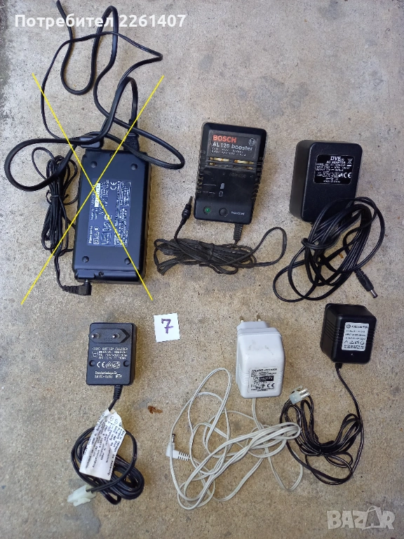 7. Захранване: голямо- от видеокамера Панасоник- 6 V, 1.2А /Продадено/;
