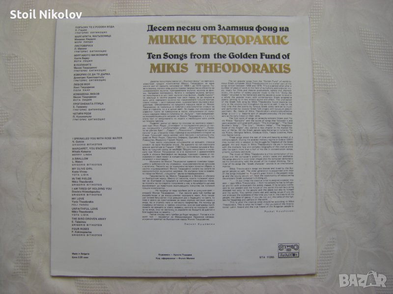 Грамофонна плоча - ВТА 11265 - Десет песни от Златния фонд на Микис Теодоракис