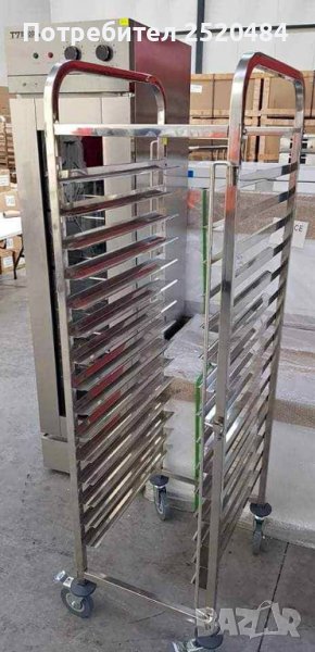 Количка за 15 броя тави с размер 60×40см. Чисто нова. Топ цена 349лв/178,44€ → Обява 37179503
