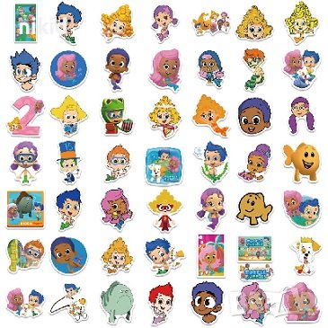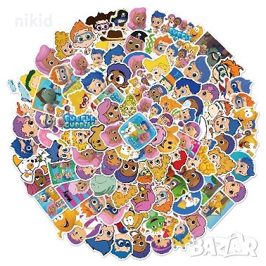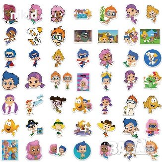 50 бр Рибки Гупи балони Bubble Guppies самозалепващи лепенки стикери за украса декор картонена торта → Обява 37179642