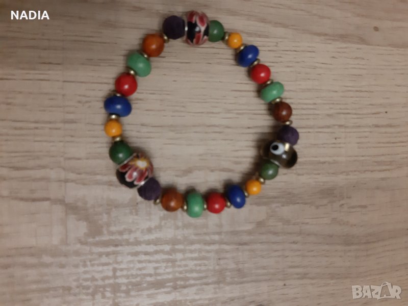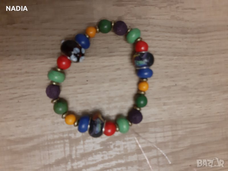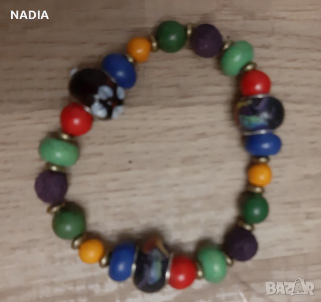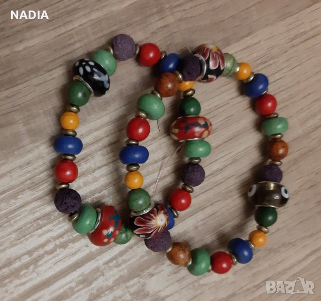 Колоритни гривни в бохо стил. Изработени от естествени мъниста и стъклени с рисувани миниатюри.Гривните са на ластик.