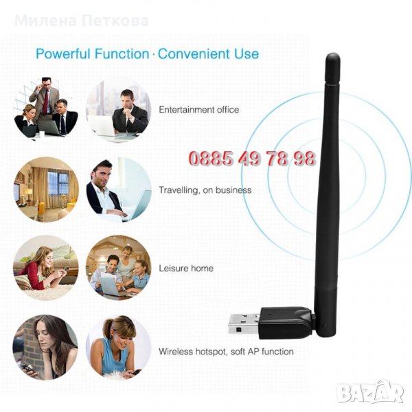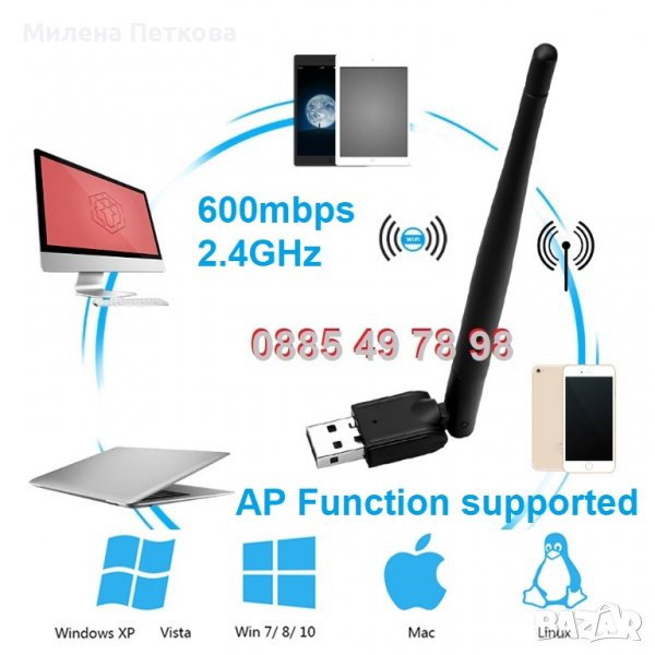 Предлагаме на вниманието ви високоскоростната - до 600mbps USB 2.0 БЕЗЖИЧНА МРЕЖОВА КАРТА за връзка с интернет. USB Wireless N LAN адаптера Ви позволява да свържете вашият настолен компютър или лаптоп към безжичните мрежи около Вас. Безжичният LAN адаптер се включва в някой USB порт на компютъра и след това безпроблемно и отдалечено можете да свържете това устройство с рутера си и съответно с ИНТЕРНЕТ МРЕЖАТАТА. Особено добро решение е за настолни компютри на които искате да ползвате безжичен интернет или на лаптопи и таблети с развален Wi Fi модул. Отлично решение за вас, което ще Ви върши несравнимо по-добра работа от масово предлаганите USB тапички, без антени. Освен всичко това безжичният адаптер поддържа ACCESS POINT MODE - Когато нямате безжичен рутер, можете да поставите мрежовата карта в компютър включен към интернет и да превключите адаптера в режим на точка за достъп. Тогава това е еквивалентно на безжична връзка, която може да поддържа множество компютри или WiFi устройства, които да получават интернет достъп чрез този wifi adapter.