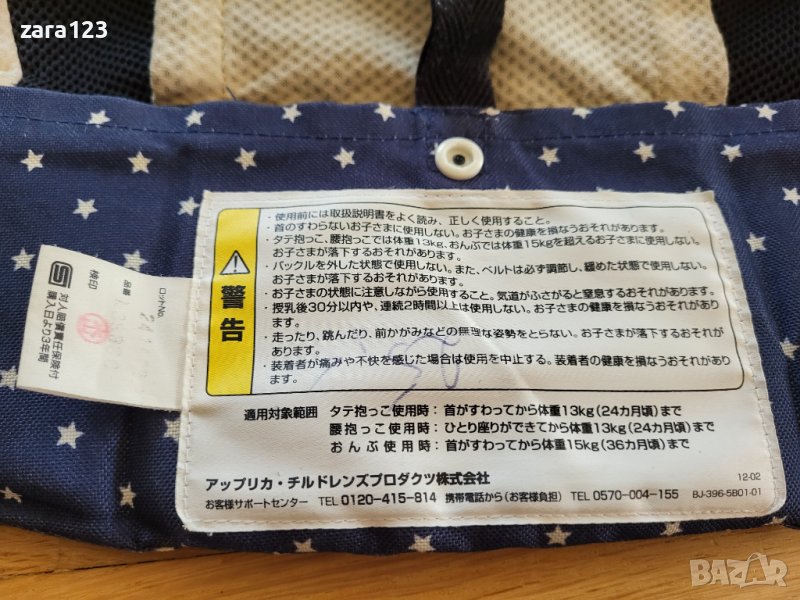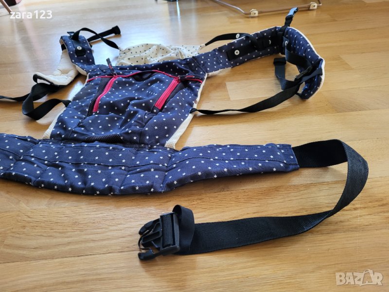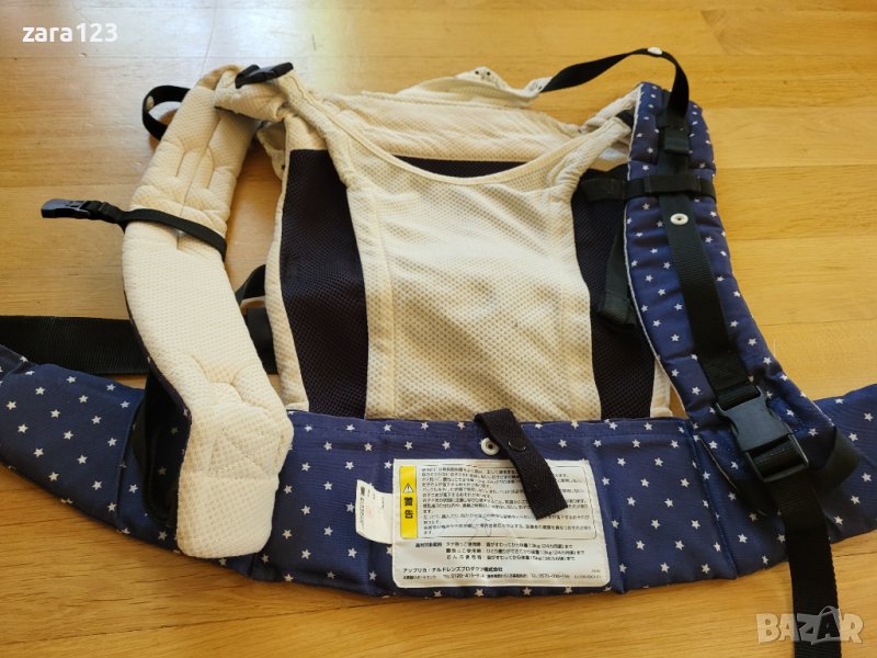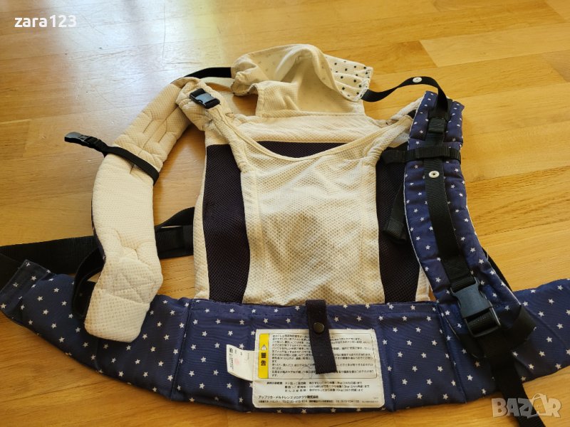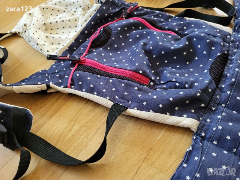 Страхотна японска раничка за носене на бебе. Може да се носи и на гръб и отпред като бебето е обърнато към родителя или наобратно. Бързо съхне ако се изпере, от 4м нататък може да се ползва. Ще пратя видео при интерес с инструкции. Като нова е, почти не е ползвана. Единственият минус е, че коланът, който се стяга на кръста не е много дълъг и при по-пълни хора не е добър вариант. На мен ми е добре, въпреки че съм доста дебела, но на мъжа ми, който има коремче, но пък не е дебел, не му става :))) само това трябва да се съобрази :)))