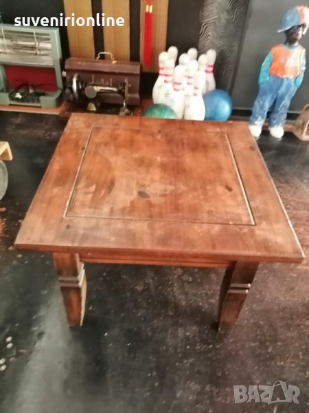 Стара холна маса от масивно дърво. Височина 45, плот 65/65 см.