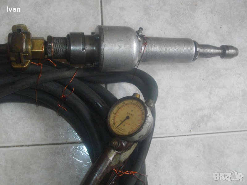 ПРОФЕСИОНАЛЕН оригинален пневматичен Мишелин прав флайф/работещ на компресор съгстен въздух/ с 8 метра. масивен маркуч и оригинален Мишелин манометър.