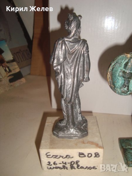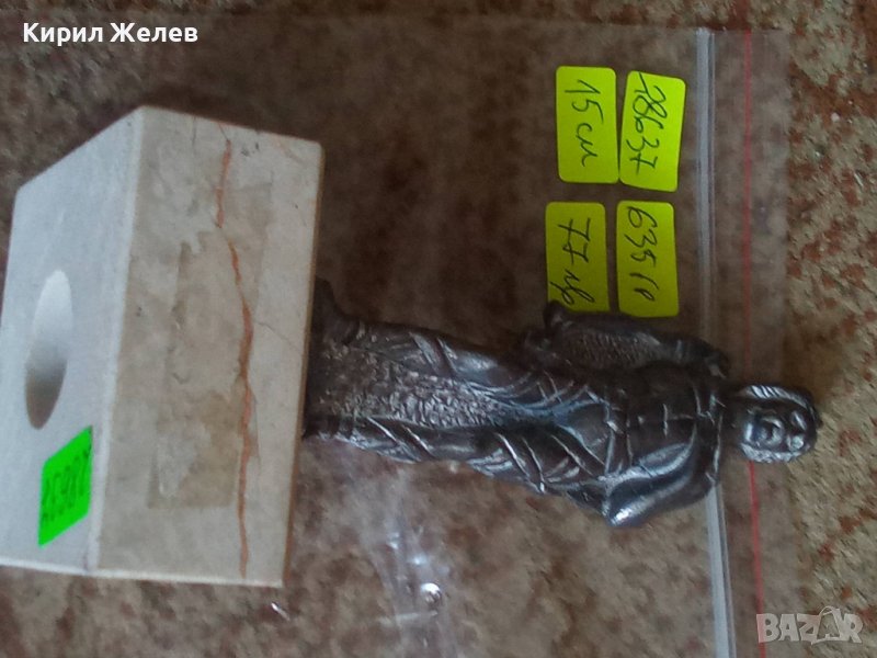 Художествена майсторска изработка, отлично състояние, височина и тегло ги пише на етикетчетата, снимките я онагледяват. Класически стил. Масивен бял метал, магнит НЕ го лови, предполагам оловна сплав или бял бронз. Изпращам по Еконт с Опция Преглед и отстъпка-транспорт.