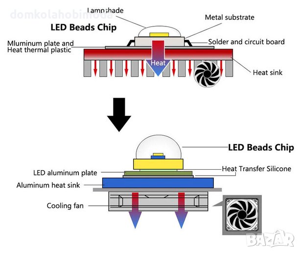 Може да се монтира и на желязо което е по -лош проводник на топлина но ако е с голяма площ и дебелина е достатъчен.