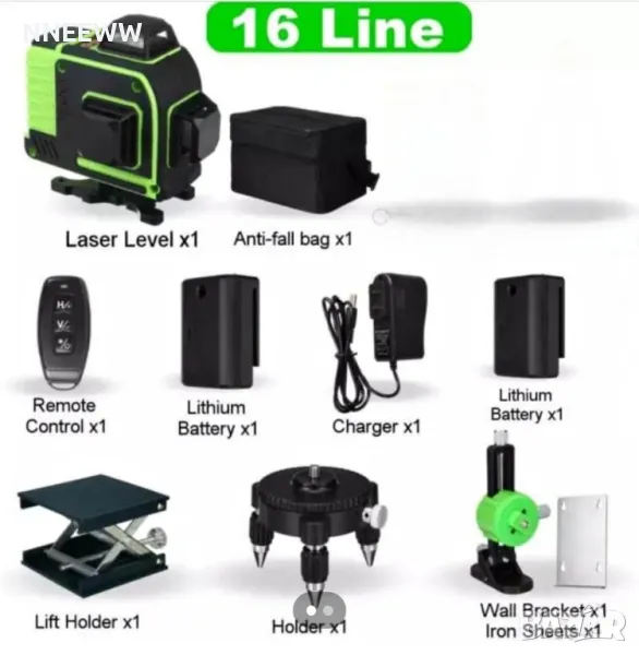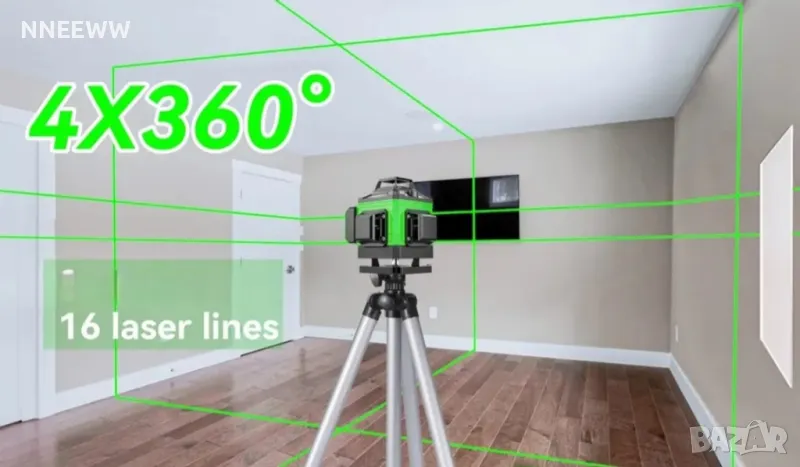 4D ЛАЗЕРЕН НИВЕЛИР с 16 линии (четири точков) самонивилиращ се, със зелен лазер
