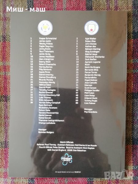 Снимки 3 и 4 - Чисто нова , официалната програма на английски език от The FA Community shield Final 2021 Leicester City vs. Manchester City , резултат 1 - 0 , 7-ми Август 2021 , стадион Wembley , Лондон. Носители на купата Leicester City.