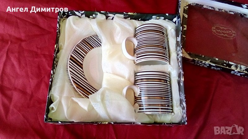 Висококачествен порцелан Мигра нови , две чаши и чинии нови в кутия , стазадгла