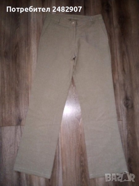 Дамски бежов панталон от тънък плат с висока талия и джобове от пред. Ширина на талията - 40 см, дължина - 100 см, дължина от талията до чатала - 24,5 см. Почти не е използван, отлично състояние.