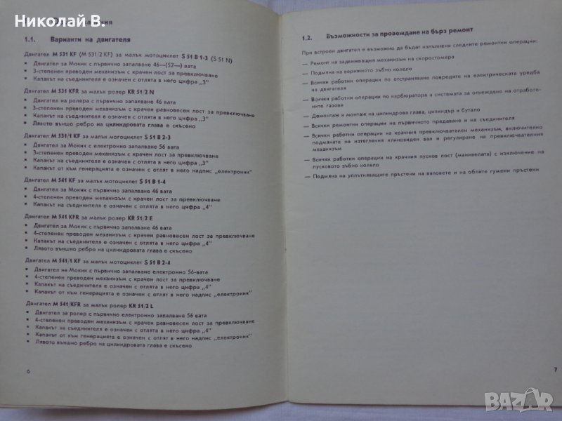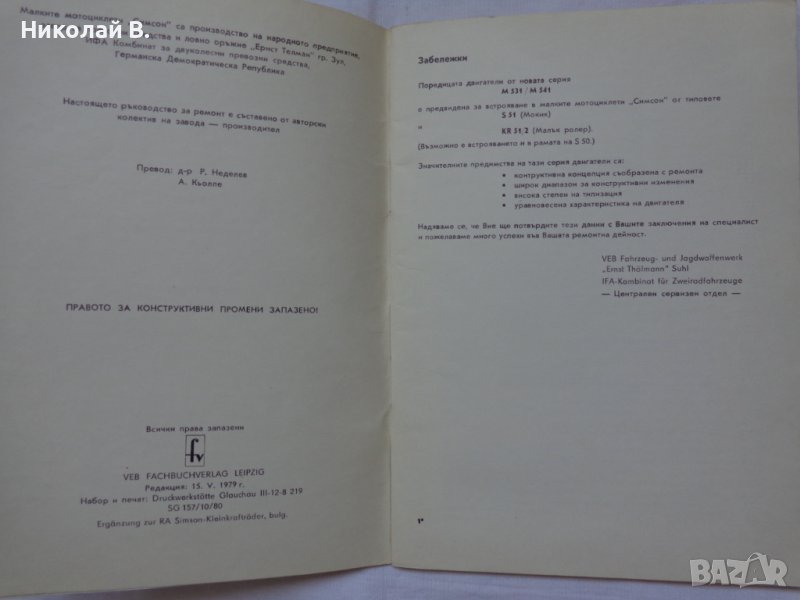 Книга Допълнително Ръководство за ремонт на малки мотоциклети Симсон двигатели серия М531/541 → Обява 37213223