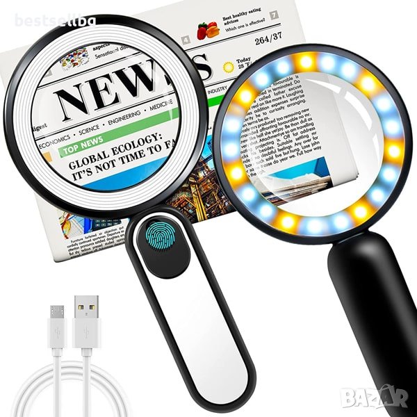 Най-яркото осветление за лупа с 21 светодиода осигуряват достатъчно яркост на всяко разстояние за четене и максимално избягват нежелани изображения върху обектива.