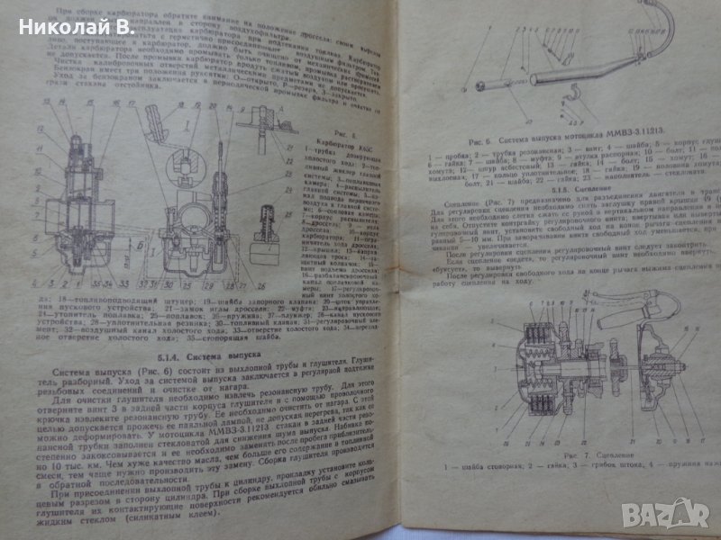 Книга Инструкция по експлуатация на Руски език за мотоциклети Минск ММВЗ - 3. 11212/ ММВЗ - 3.11213 → Обява 37214038