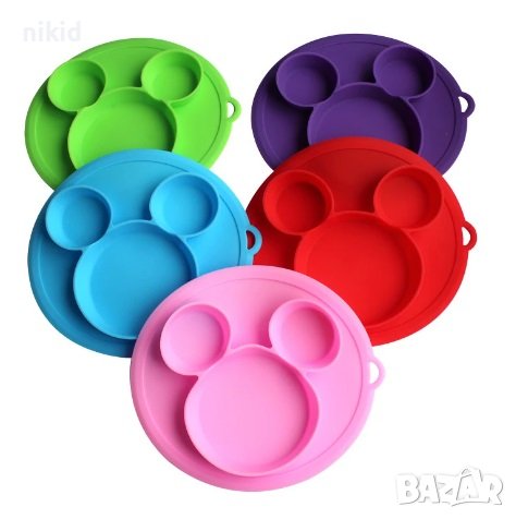 Бебешка подложка чиния чинийка купичка неразливаща самозалепваща с вакум за хранене силиконова чиния → Обява 37216526