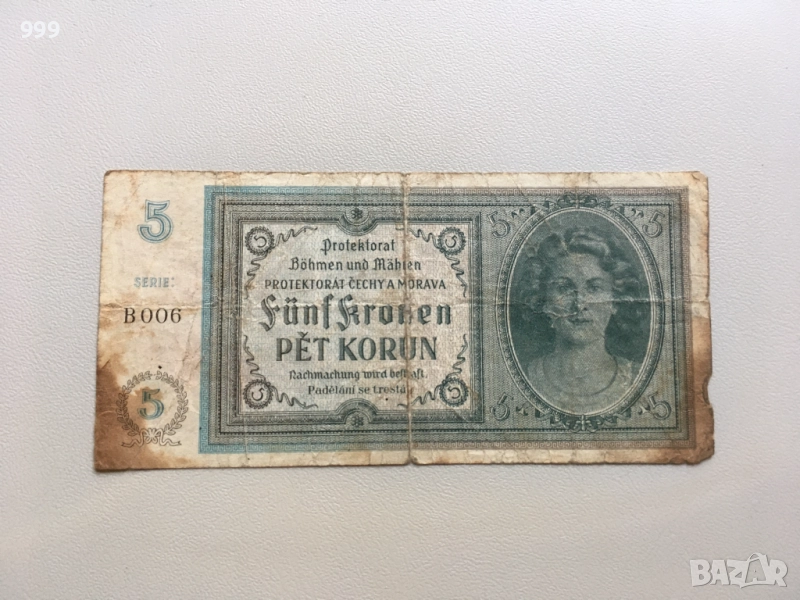 5 крони 1940 Бохемия и Моравия, 100 крони 1945, 1000 крони 1945 Чехословакия → Обява 37217227