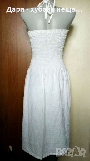Нова френска рокля,без хартиен етикет.Материята е памук, а плата е много мек, плътен и качествен!