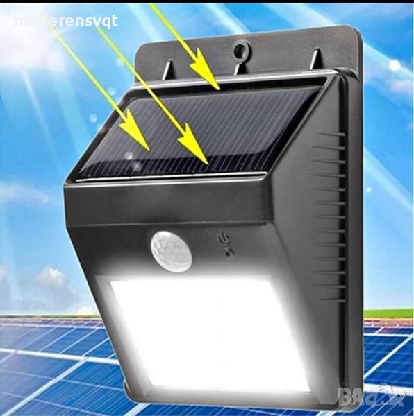 LED лампа със соларен панел и супер ярки 30 LED диода с бяла светлина. Високото качество на соларния панел осигурява зареждане дори на мъгла. Външната лампа е с вграден датчик за движение, проектиран с 120° сензор с широкоъгълен светлинен лъч до 10 метра, достатъчен да покрие голям периметър от вашият двор или градина.