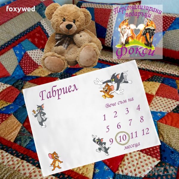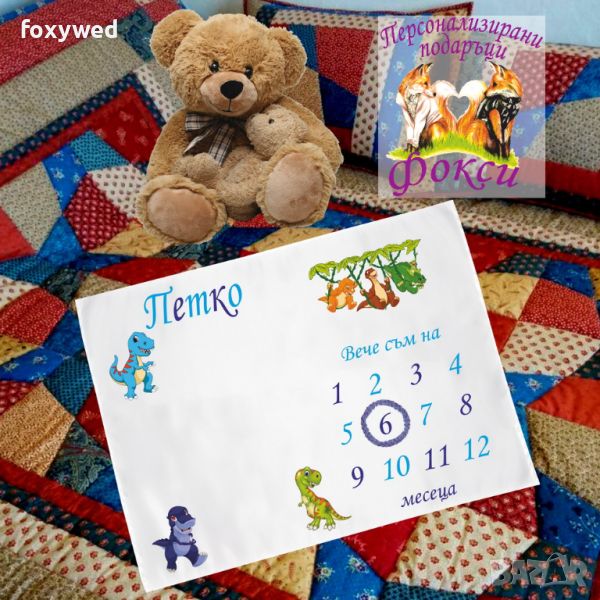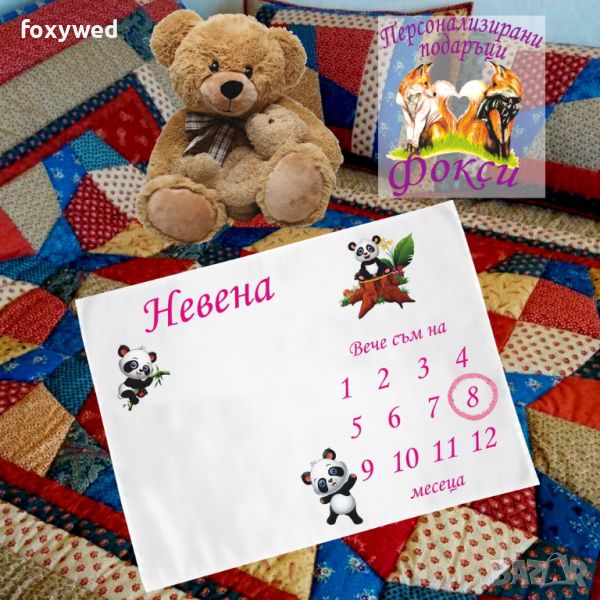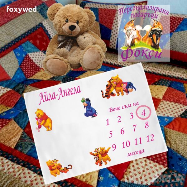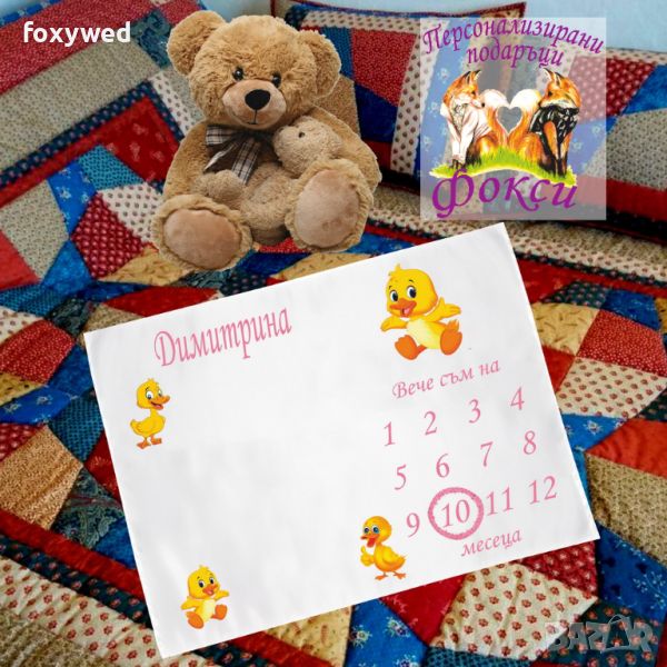Платното за снимки с месечинки е изцяло персонализирано с отпечатване на името на детето и любим герой. Изработено е от плътен, непрозрачен, матов плат фин микрофибър, в бял цвят /100% полиестер/, с размери 75 х 100 см.