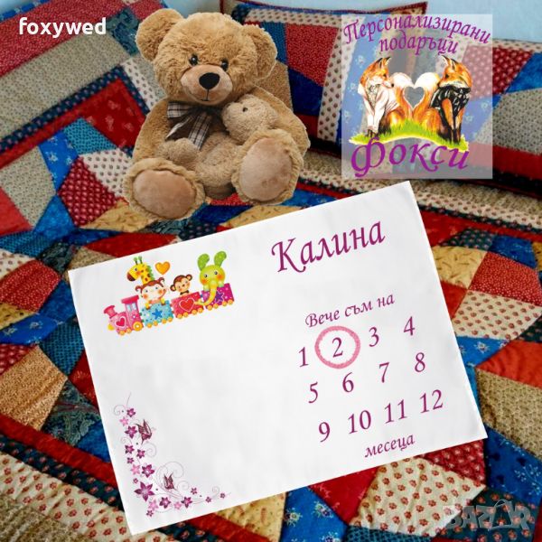 Платното за снимки с месечинки е изцяло персонализирано с отпечатване на името на детето и любим герой. Изработено е от плътен, непрозрачен, матов плат фин микрофибър, в бял цвят /100% полиестер/, с размери 75 х 100 см.