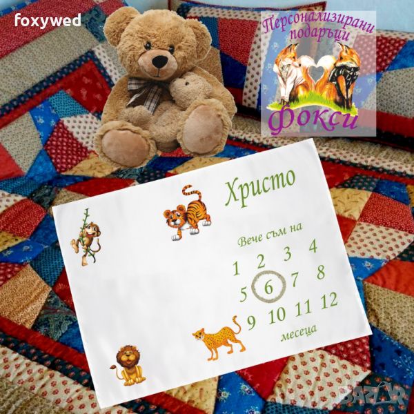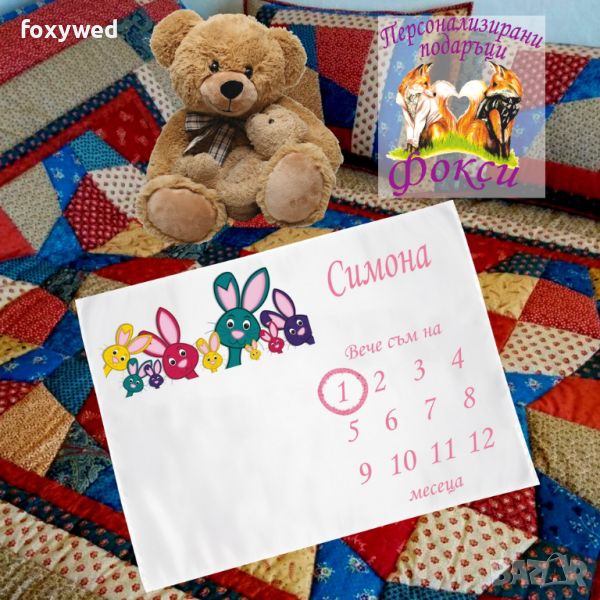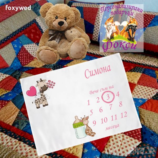 Платното за снимки с месечинки е изцяло персонализирано с отпечатване на името на детето и любим герой. Изработено е от плътен, непрозрачен, матов плат фин микрофибър, в бял цвят /100% полиестер/, с размери 75 х 100 см.