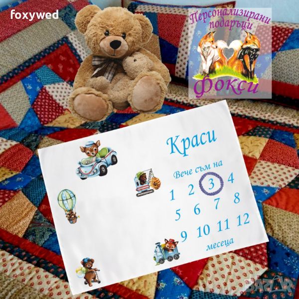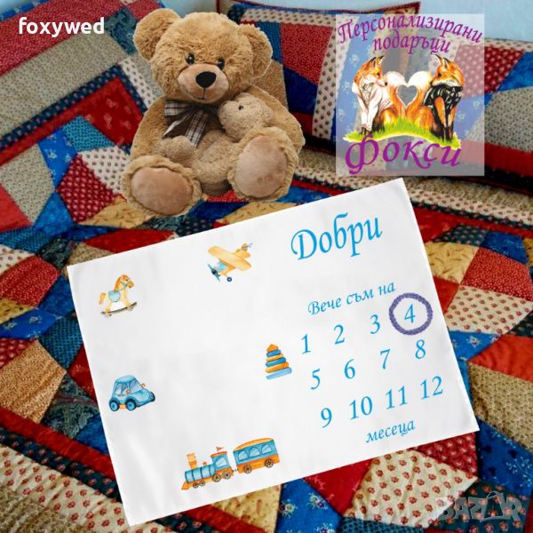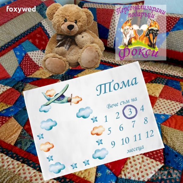 Платното за снимки с месечинки е изцяло персонализирано с отпечатване на името на детето и любим герой. Изработено е от плътен, непрозрачен, матов плат фин микрофибър, в бял цвят /100% полиестер/, с размери 75 х 100 см.