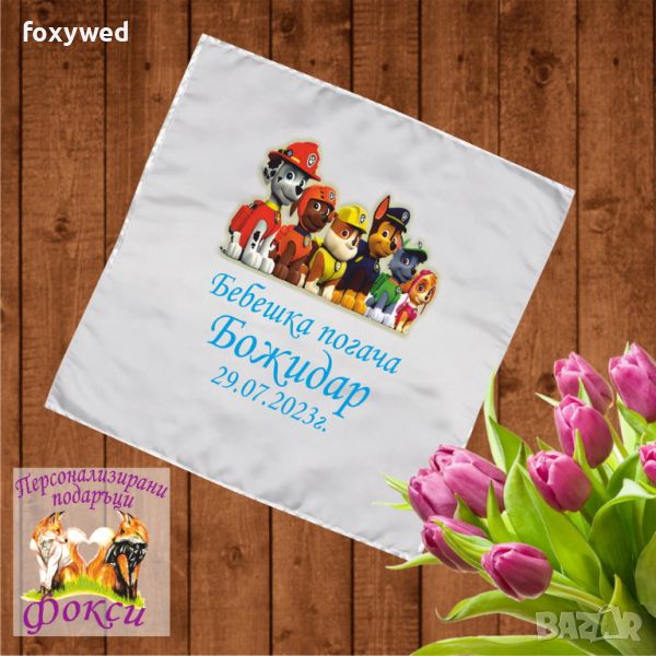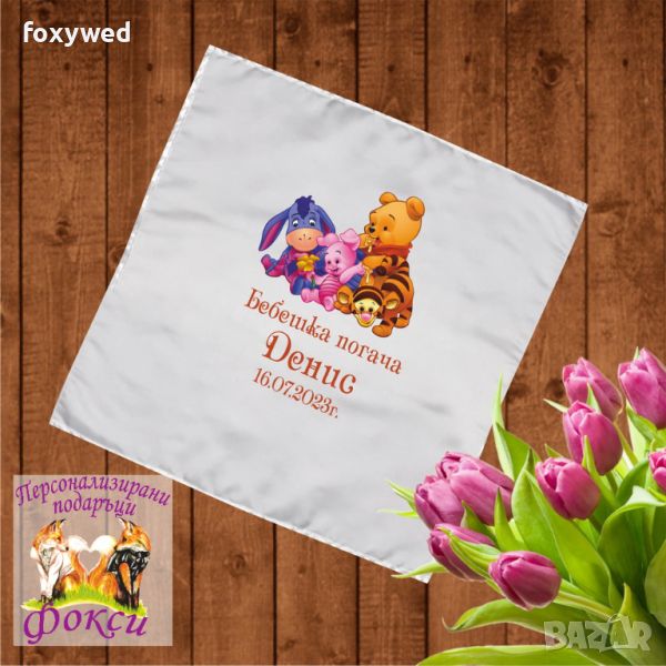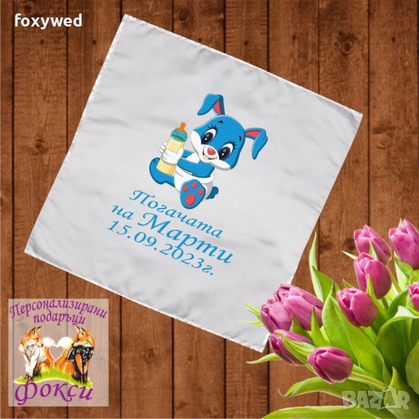 Месал / платно за бебешка погача, с име и дата → Обява 37222023