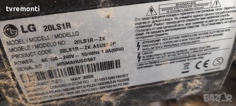 POWER SUPPLY INVERTER AIVP-0032 for ,LG 20LS1R Борда е гарантирано работещ Демонтиран от телевизор LG модел 20LS1R със счупен дисплей CLAA201WA07C