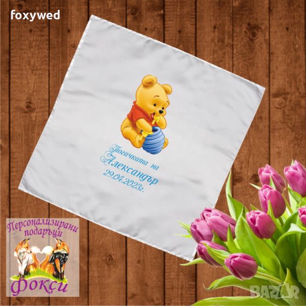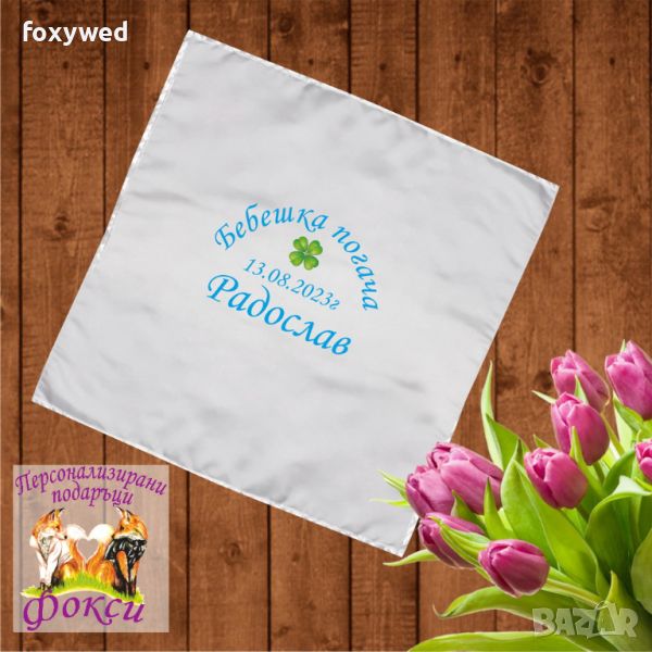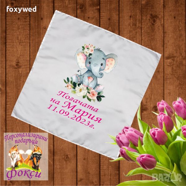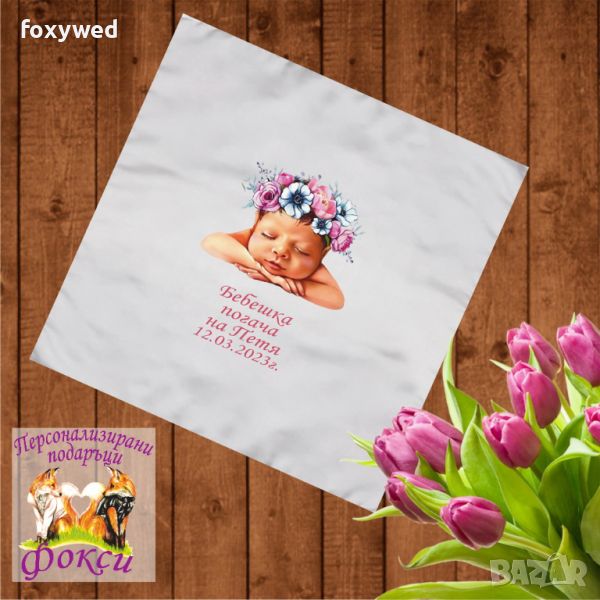 Месал / платно за бебешка погача, с име и дата     → Обява 37222083
