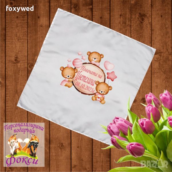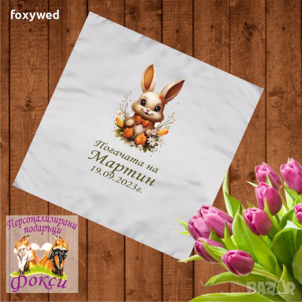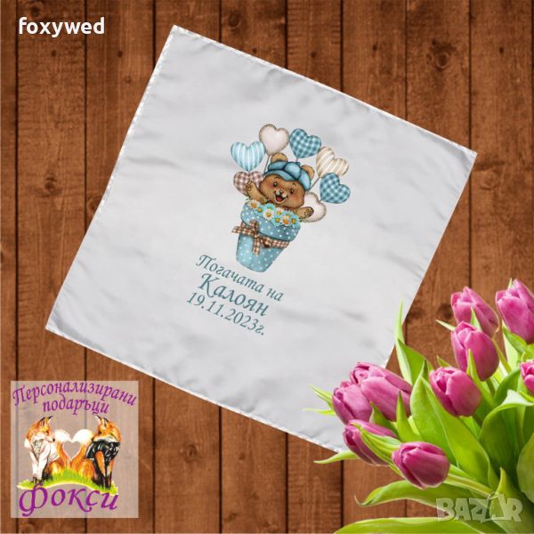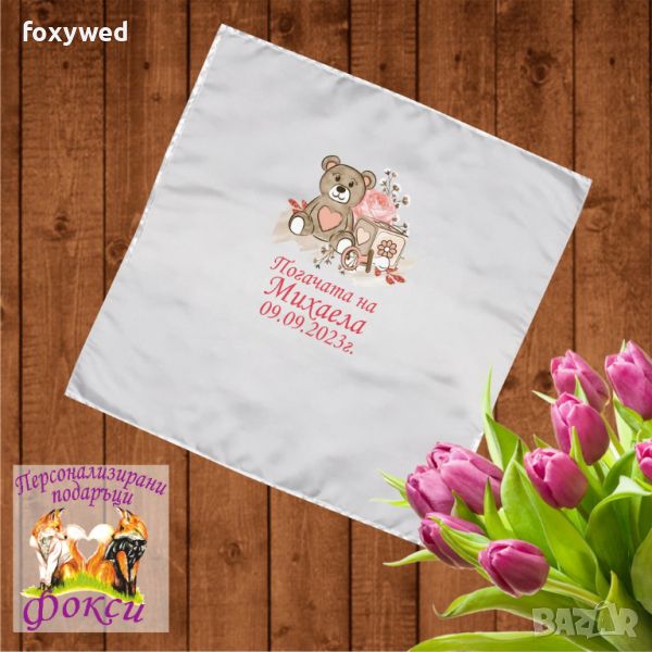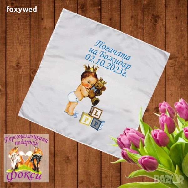 Месал / платно за бебешка погача, с име и дата   → Обява 37222097